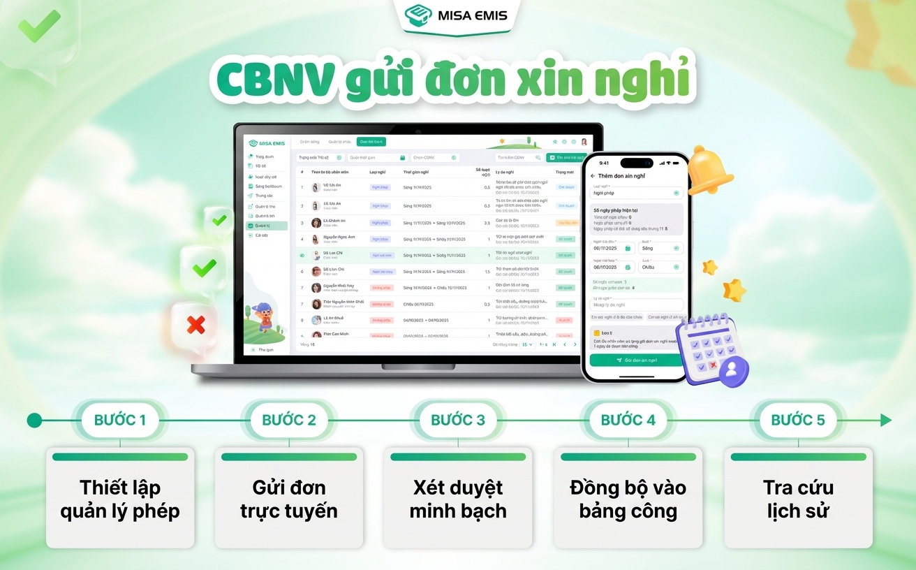 MISA EMIS ra mắt tính năng “CBNV gửi đơn xin nghỉ” – Quản lý nghỉ phép trực tuyến nhanh chóng, minh bạch