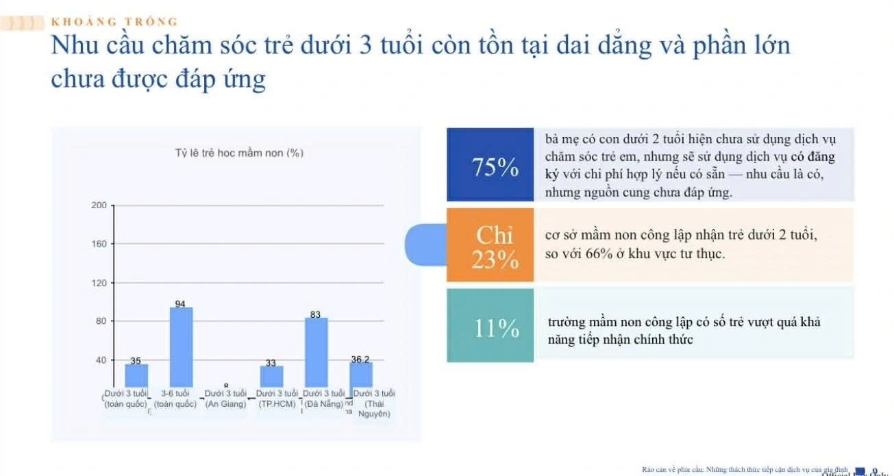 Theo các thống kê gần đây, có tới 75% bà mẹ có con dưới 2 tuổi chưa sẵn sàng cho con đi học mầm non. Con số này không chỉ là thách thức mà còn là một “đại dương xanh” đầy tiềm năng cho những ngôi trường biết cách xây dựng niềm tin và khẳng định chất lượng chăm sóc thông qua công nghệ.