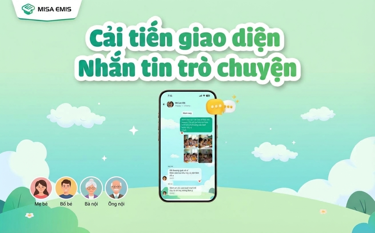 MISA EMIS chính thức nâng cấp giao diện Nhắn tin trò chuyện, giúp việc trao đổi thông tin về bé nhanh hơn – rõ ràng hơn – kết nối hơn mỗi ngày. Với phiên bản mới, phụ huynh và giáo viên có thể theo dõi nội dung xuyên suốt, hạn chế bỏ sót thông tin quan trọng và tăng hiệu quả phối hợp chăm sóc, giáo dục trẻ.