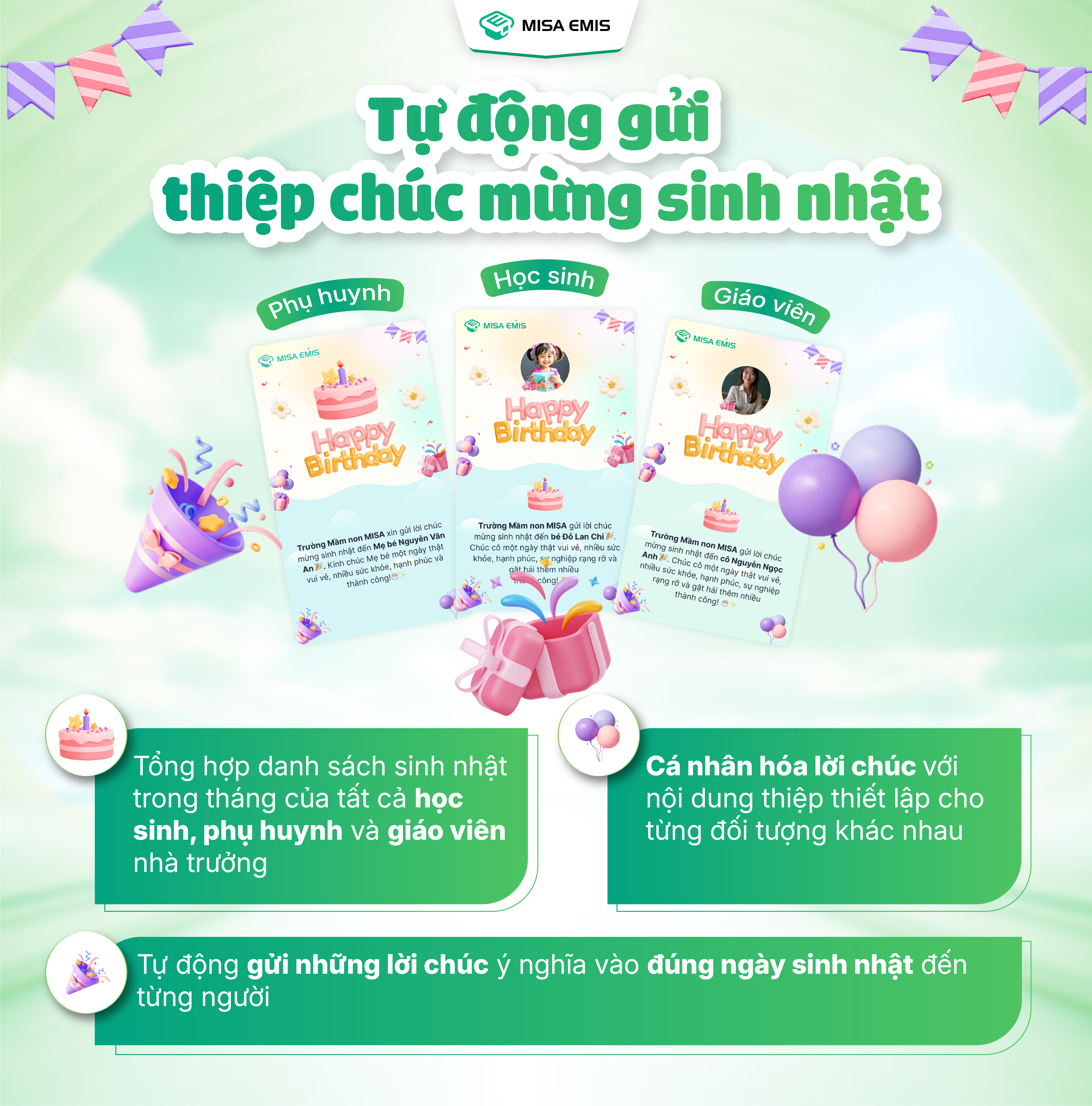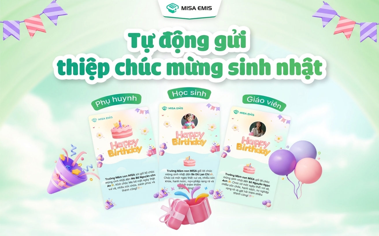 MISA EMIS phần mềm quản lý trường mầm non giới thiệu tính năng tự động gửi thiệp chúc mừng sinh nhật
