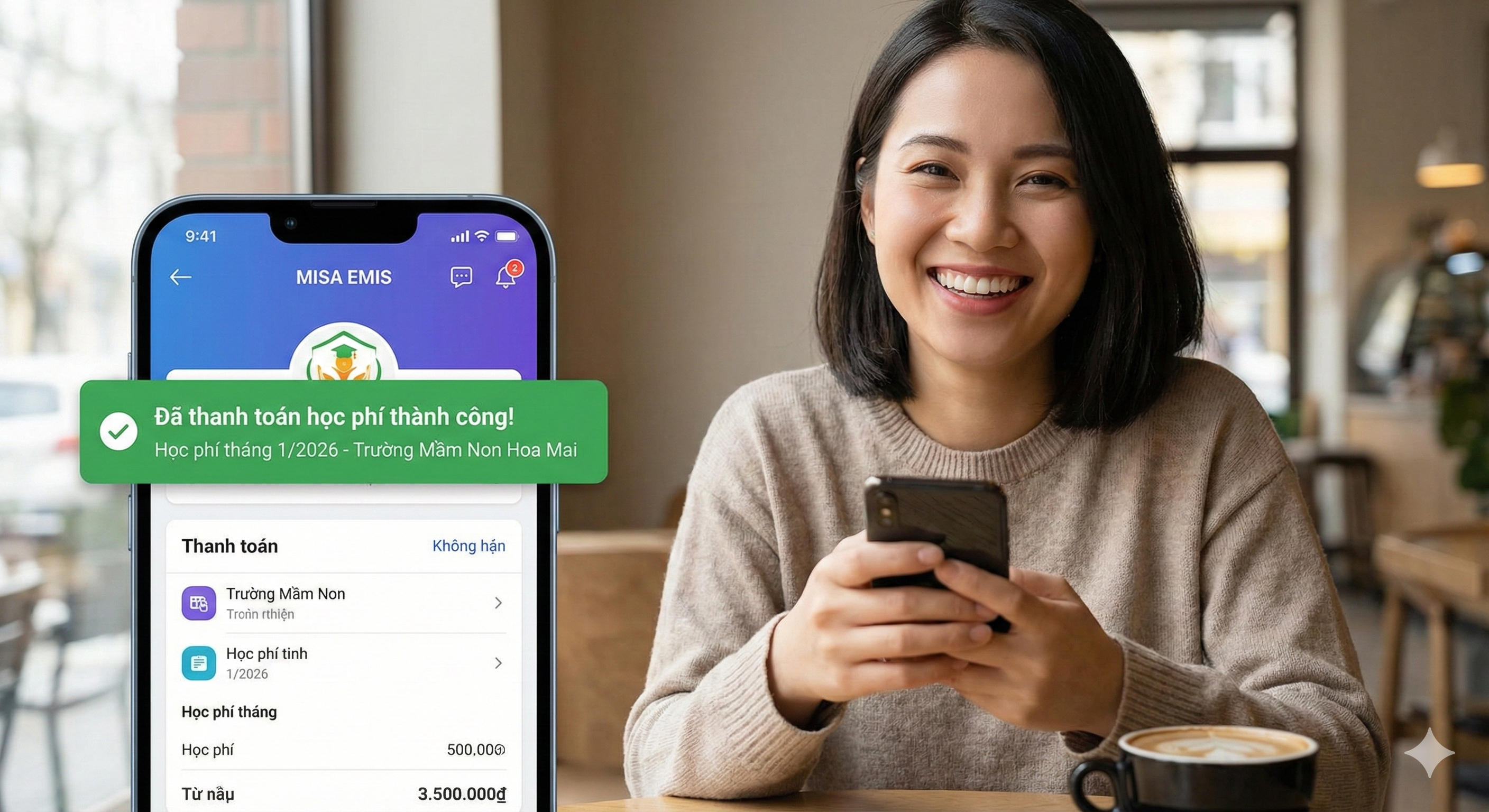 Ngược lại, các trường hiện đại đã áp dụng phần mềm quản lý, cho phép phụ huynh: Nhận thông báo học phí tức thì trên điện thoại, thanh toán online trong 1 phút, tra cứu lịch sử đóng tiền minh bạch. Điều này giúp ba mẹ trút bỏ được nỗi lo quản lý tài chính lặt vặt để tập trung vào công việc