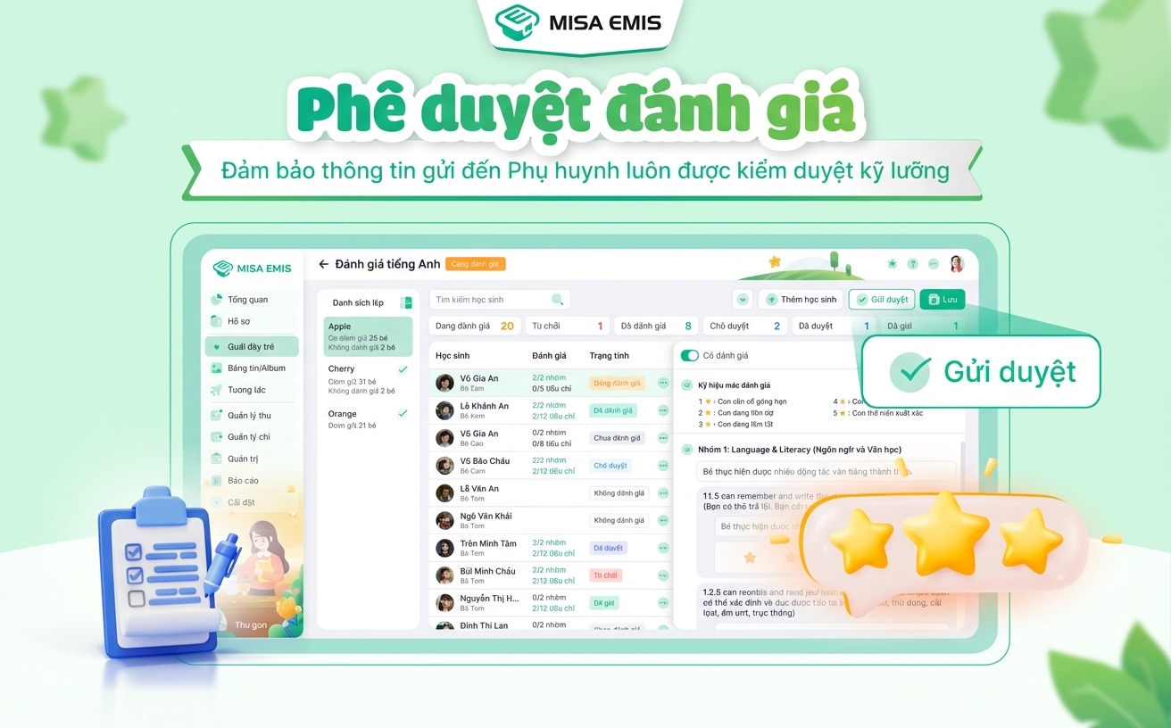 MISA EMIS ra mắt tính năng “Phê duyệt đánh giá” – Kiểm duyệt chặt chẽ, gửi phụ huynh chính xác & chuyên nghiệp